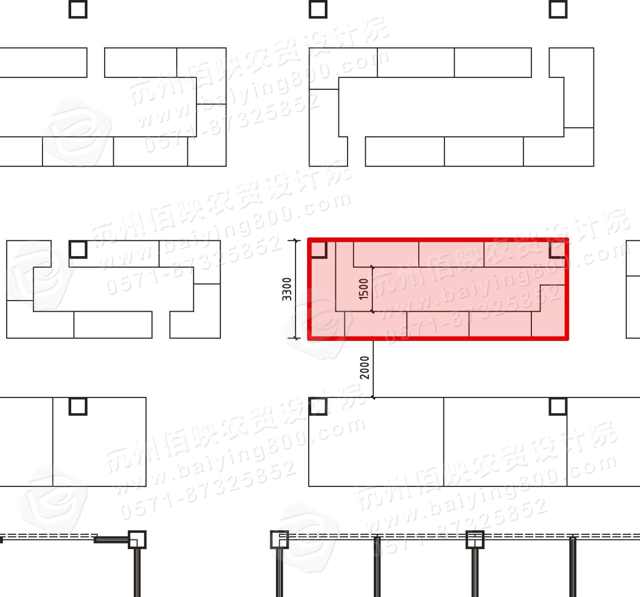 在这个例子中,柱子过密,在预留2米宽通道之后,摊位总宽只有3.3米,而摊位内空部分仅有1.5米,背对背的两个经营者每人平均分得的活动宽度仅有0.7米,完全无法满足日常经营活动,更无法放下配套设备(如冰箱、操作台、水槽等)。要满足摊位的常规宽度4.5米以及通道的正常宽度2.5米,应该将柱距增加1.7米,那么这个摊位的布置就能够完美无瑕了,而现状如此别扭的摊位空间,完全是可以通过调整柱距来避免的。