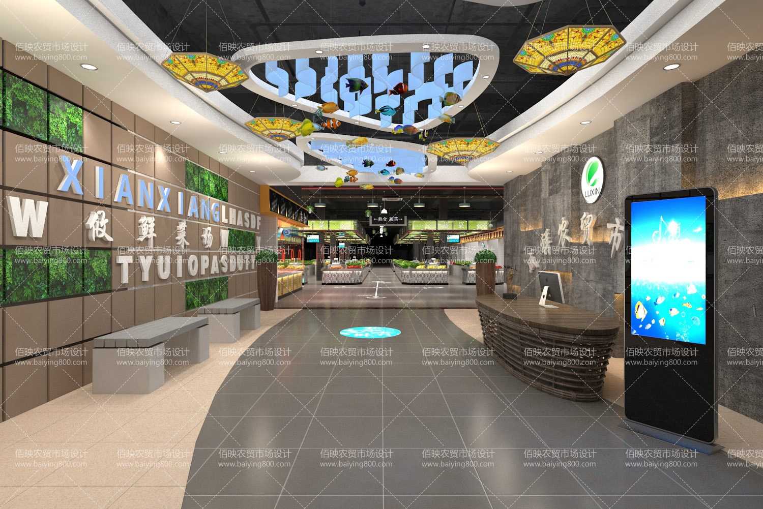 市场的摊位被划分为单元格,长租、出售;为了便于销售,农市场往往基础设施不会过差,甚至销售类市场中也有主题明确的中高端市场。在利益的催动下,也应运而生了一批网红菜场、高端智慧市场,开创了资本快消时代的新篇章,这一篇章不可谓不壮阔,也不可谓不实用,从各角度高效地完成了新一轮市场的变革;但从新农贸车轮的倒影上细细看去,竟然惊人地如出一辙!究其根本,绝大部分网红市场的文化风貌,均是复制粘贴的批量产物,仿古之风、暗色调之风、仿盒马之风横行,无论身处何地,不管不顾就是仿古,瓦片、屋檐、灯笼一时确实新奇,但千篇一律之后不免审美疲劳。更有甚者一套设计模板可以运用于任何项目,从最初的骇人听闻,到现在被广泛接受,甚至被认为物美价廉。