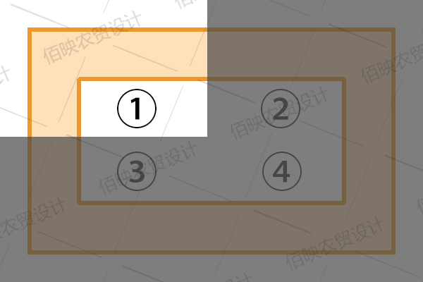如上图,一个摊岛划分为4户,①②③④这四个位置形状完全一致,营业空间面积一致,台面面积一致,做到了完全均分。是目前各类型农贸市场的摊位划分方式中,最合理的。