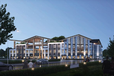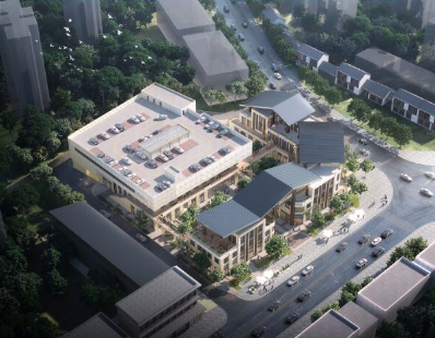 建筑主体4层,其中1、2层为农贸市场,面积约4500㎡,配电房101㎡,公厕83㎡,消控室42㎡,物业办公211㎡。项目配有机动车位100个,非机动车位555个,其中地上83个,地下472个。