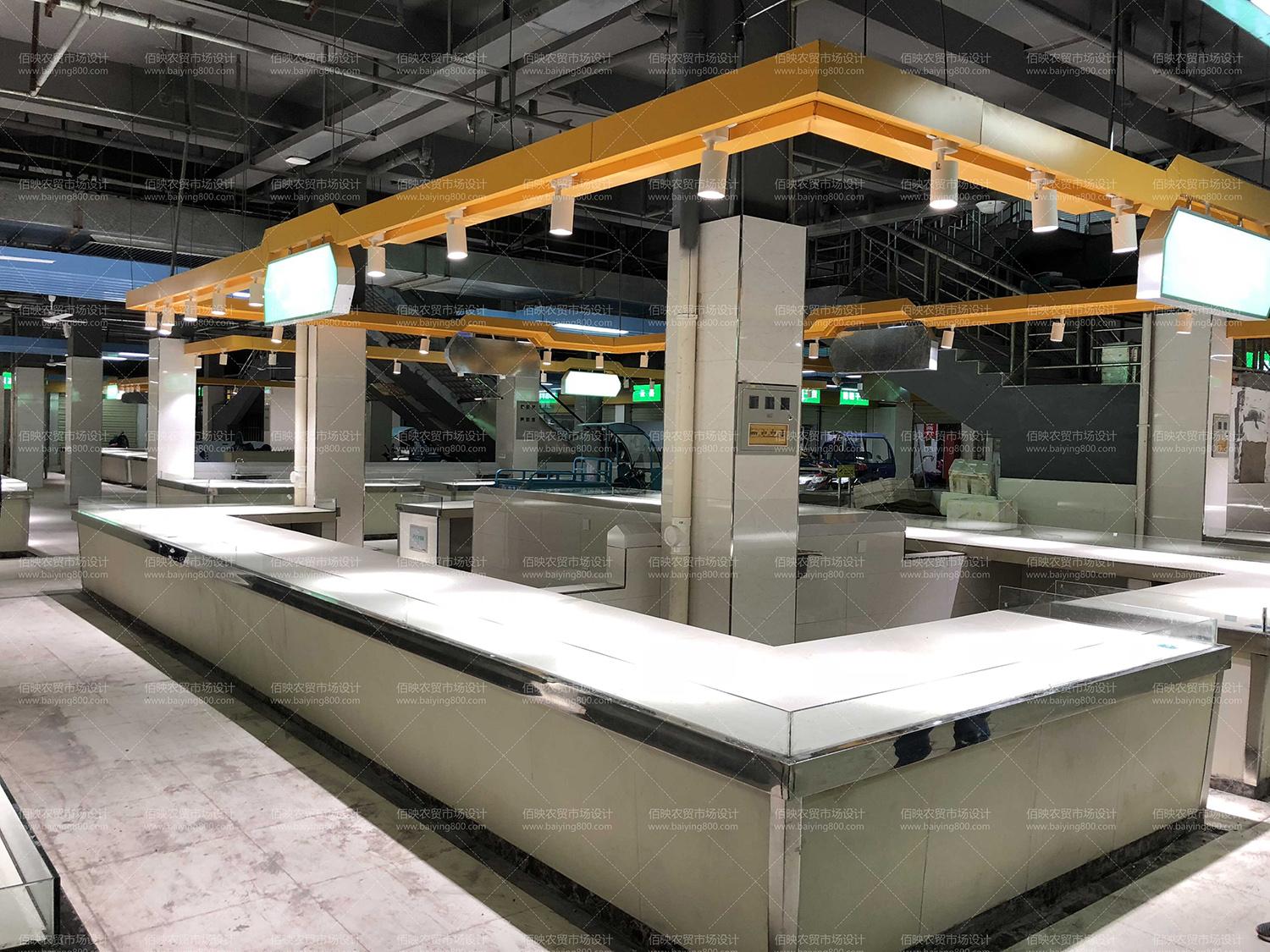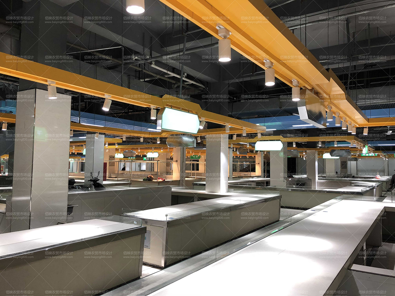 而在装饰装修风格上,运用的是现代化简洁大方的设计元素,配合上明亮而又有层次的灯光效果,让逛农贸市场不再是一件仓促的琐事,而成为一次视觉和感官上的体验。摊位店招采用倾斜造型结合业态标志,给人充满活力的线条感,配合射灯更是将菜品的新型新鲜、缤纷呈现得淋漓尽致,顶部较为随性分布的局部吊顶,既有大气的创意,也有单体的协调,让五小农贸市场从顶到地的设计感既多样,又不乏统一,在有限的投资金额范围内,发挥出了最佳性价比的效果。