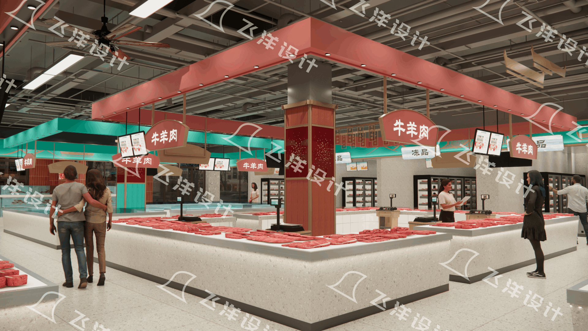 诸暨福田农贸市场作为老菜场取缔后的新建项目,承载着原有商户安置与社区民生保障的双重使命。飞洋设计团队以"轻投资、重体验、高效益"为设计原则,采用现代简约风格,通过科学动线规划、灵活空间布局与智能化系统集成,打造既满足传统商户经营需求,又符合新时代消费趋势的现代化农贸市场典范。