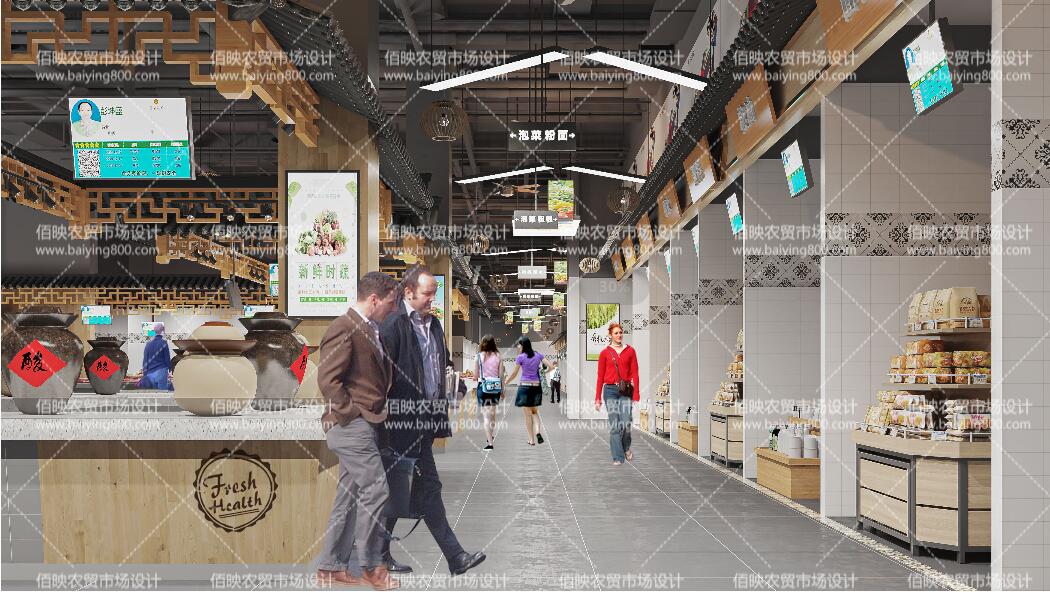 弘扬并延续民族文化,让现代化智慧市场理念与传统布依族建筑风土相结合,是打造纳客智慧市场的重要任务。同时,由于该项目位于地下一层,这也给规划设计带来一定难度,特别是交通动线和硬件配套设施上,既要能够兼顾智慧农贸市场的打造理念,又要具备克服地下室相对劣势的设计技巧。本次设计任务,佰映公司作为设计方无比重视,通过前期详实的现场考察、周边环境调研,打好设计筹备工作的基础,经过对动线的合理规划,规避采光、通风、垂直交通等因素的先天不足,成功给市场开发方带来了最优的设计思路,以及一系列的问题解决方案。