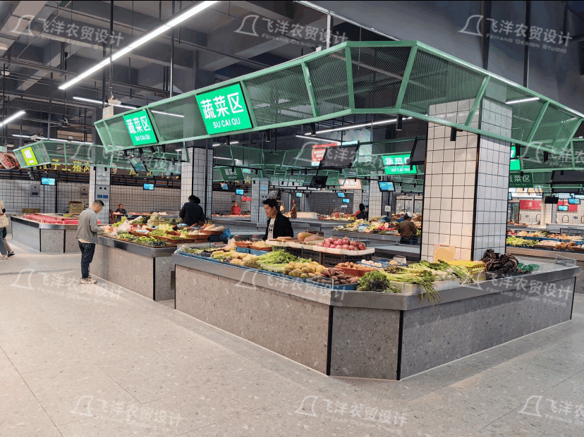 清晰分区:按品类划分鲜肉、水产、蔬菜、熟食等区域,并增设“自产自销专区”,吸引本地农户入驻,增强市场特色。