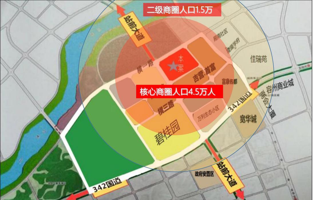 商业辐射面积,也就是新建这个农贸市场,它能够吸引周边区域多远的人来这里消费,它填补的是多大的市场空白。