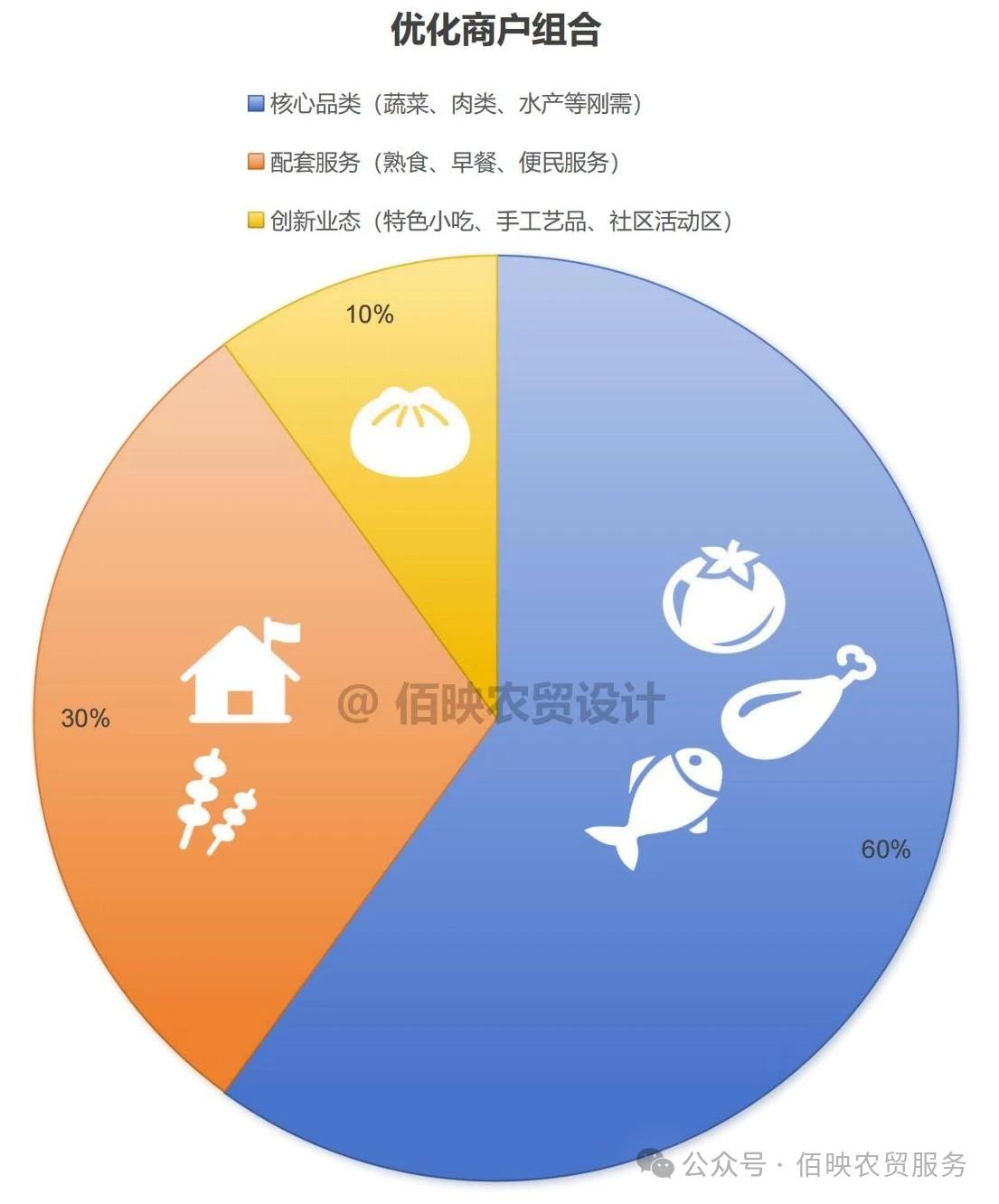 2. 优化商户组合,提升消费体验合理的业态配比能增强市场吸引力,建议采用“6:3:1”原则: