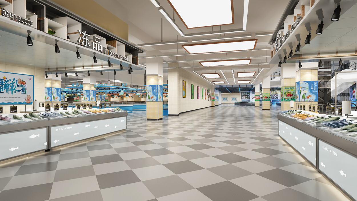 设计师在不同商品售卖区选用不同的撞色搭配,在丰富视觉效果的同时,更使住户在购物过程中只需通过方格的颜色,便能轻松找到不同种类商品的售卖区域,无形中优化了购物体验。